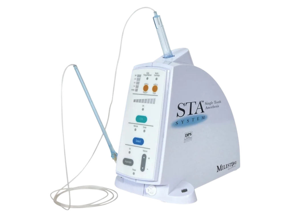 La modalità STA (Single Tooth Anesthesia) permette di anestetizzare solo il dente interessato, eliminando il fastidioso formicolio di labbra e guance.